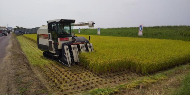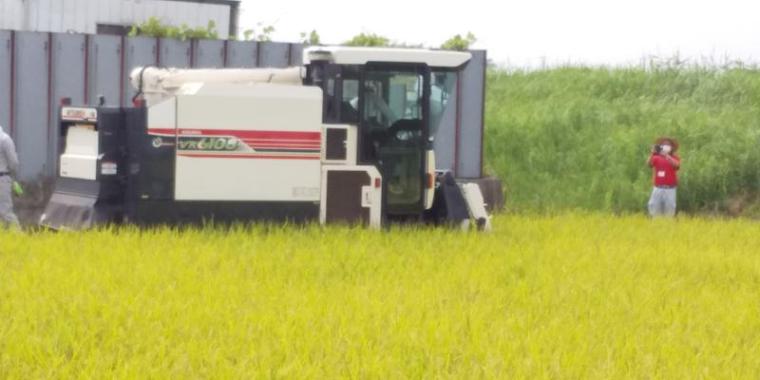 潮来市大規模稲作研究会において栽培に取り組んでいます、特別栽培米「一番星」が今年も順調に育ち、茨城県でもトップクラスに早い稲刈りが行われました。