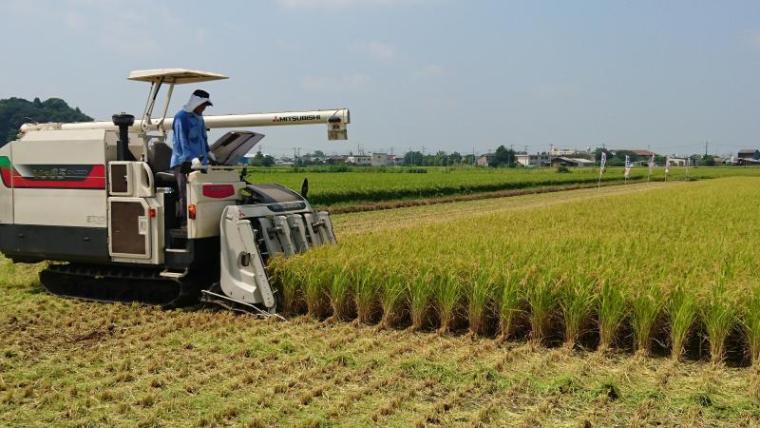 極早生米「一番星」の稲の刈り取りが行われました。